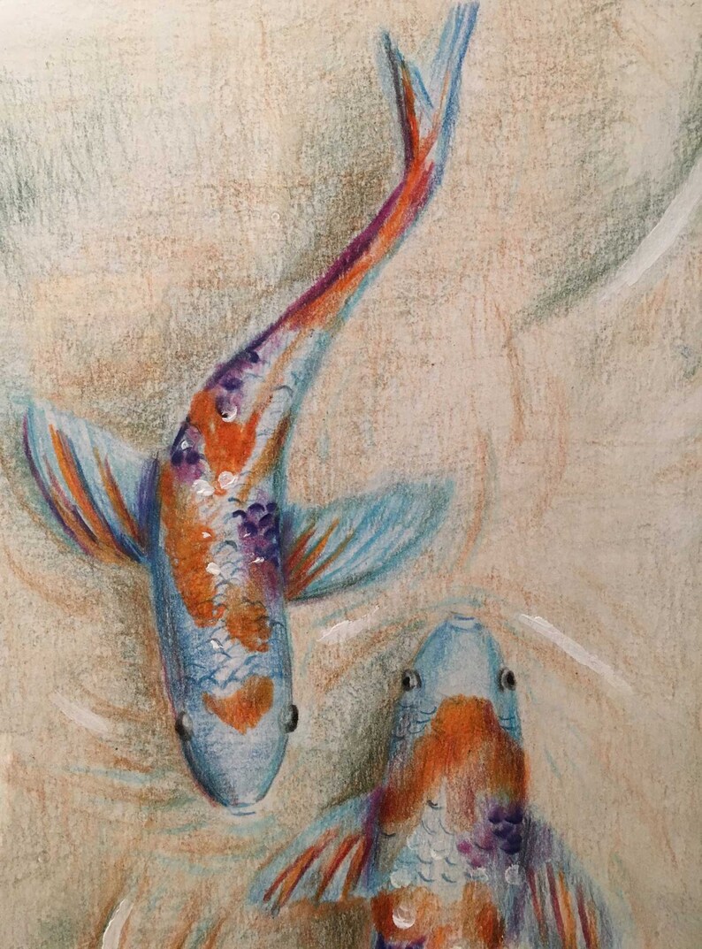 Koi Fish Drawing Color Pencil - Oily Colored Pencil Fine Art Lapis De Cor 72 Cores Profissional Colored Pencils 72 Lapis Artist - It is rendered in faber castell colored.. They enjoy staring at them in ponds and public fountains, but it is those. Draw gently so that you're just lifting the colors that are. I´ll draw two fish going in a circular form. This piece is one that speaks of nature, tranquility, harmony and beauty. In fact, the japanese word koi means carp. most carp are brown or grey in color, but in japan, the brightly colored fish are designated with the name nishikigoi, or brocaded carp. a brocade is a woven fabric with a colorful design which the.